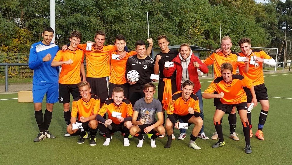 Herzlichen Glückwunsch an die diesjährige Mannschaft der WK1 mit ihrem Coach Herrn Reichartz, die im Finale zunächst gegen die Mannschaft des Gymnasiums Odenkirchen 3:0, anschließend gegen die Mannschaft des Gymnasiums Rheindahlen 1:0 gespielt und damit den Titel des Stadtmeisters 2016 gewonnen hat.
