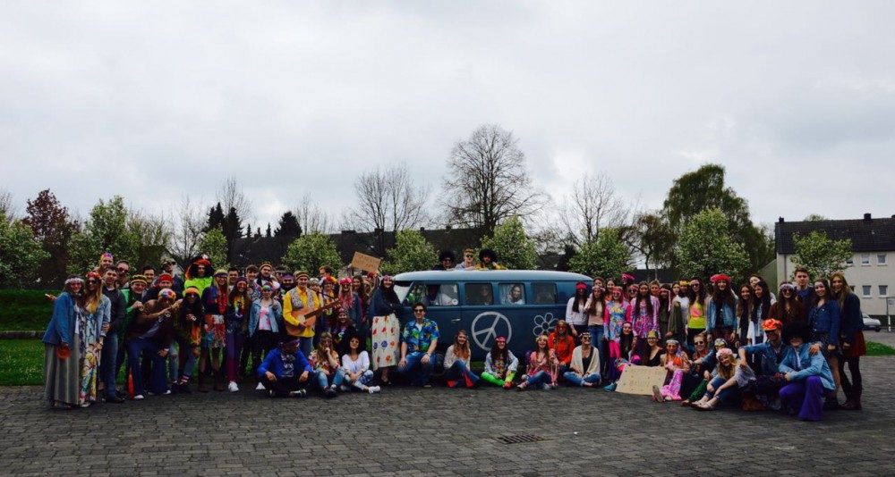 Ein besonderes Bild der Stufe bot sich im Laufe der Mottowoche, als sich (fast) alle als Hippies um den VW-Bulli aus dem Jahr 1954 gruppierten. Alles Gute wünschen wir den 100 Abiturient*innen für die abschließende Vorbereitung auf die Prüfungen und den Besuchern unserer Homepage schöne und erholsame Ferien!