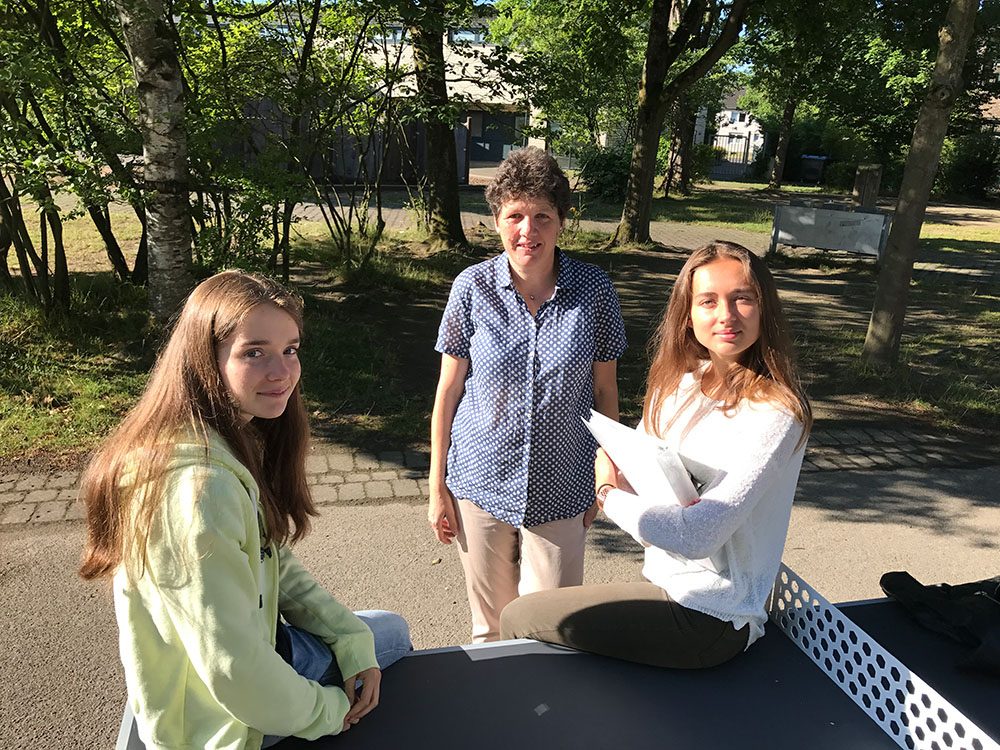 Marie und Lisa aus der 9.3 mit ihrer Französischlehrerin Frau Bräutigam