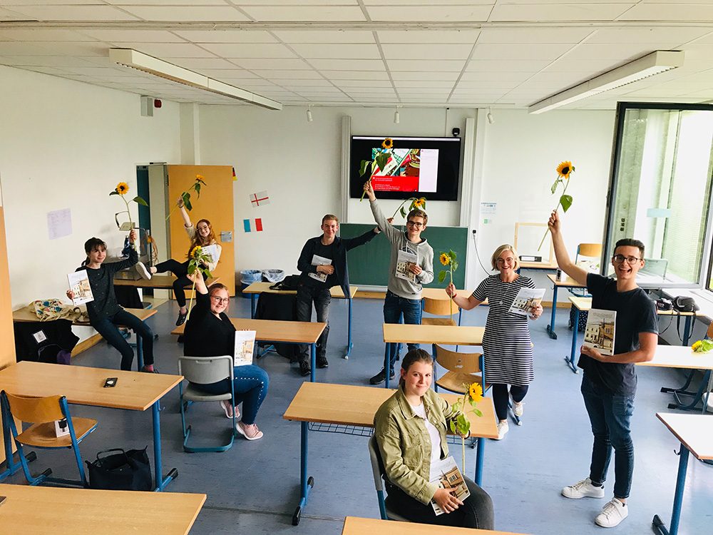 Zum ersten Mal in der Geschichte eines Schülerzeitungswettbewerbs wurden die Preisträger nicht im Rahmen einer großen Preisverleihung geehrt, sondern auf digitalem Weg per Videobotschaft von Yvonne Gebauer, Ministerin für Schule und Bildung des Landes NRW, und Michael Breuer, Präsident des Rheinischen Sparkassen- und Giroverbandes verkündet. Die Standpunkt-Redaktion der Gesamtschule Hardt hatte sich dazu heute in Echtzeit um 15 Uhr und ganz analog getroffen – natürlich unter Einhaltung der aktuellen Hygienebedingungen. Gemeinsam mit Frau Oelers von der Stadtsparkasse Mönchengladbach konnten die jungen Redakteur*Innen die Videobotschaft trotz Abstand erleben. Sehr gefreut hat sich das neue Team über den Sonderpreis „Außer Konkurrenz“ für das neue Magazin-Konzept und die Weiterentwicklung der altbekannten Schülerzeitungsarbeit, an dem das ehemalige Chefredaktionsteam federführend im letzten Jahr mitgearbeitet hatte.